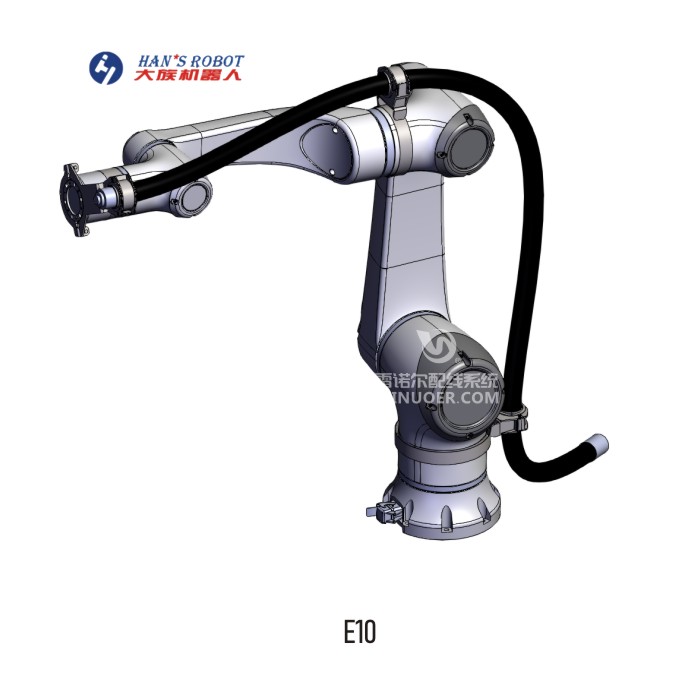 品牌:HAN'S ROBOT型号:E10方案:无伸缩直出管线包方案,轴1-6,波纹管Φ29应用:搬运等
