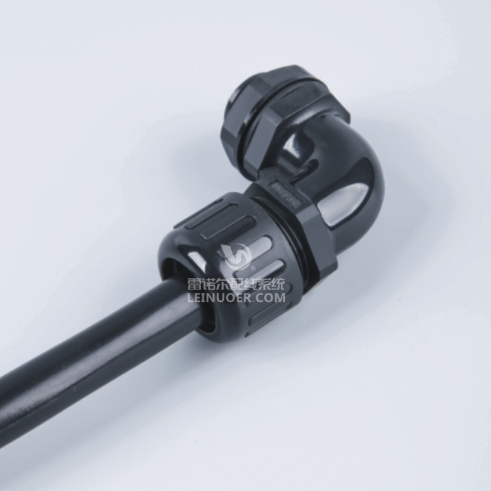 产品名称:LNE-SW-F 直角软管防水接头产品材质:A,C,E部分采用环保无卤素尼龙PA66制成,B,D 部分采用三元乙丙耐候橡胶制成。(可定制耐寒,耐高温,耐强酸碱与抗腐蚀橡胶)螺纹规格:公制(M)、英制(G)温度范围:-40℃-100℃产品颜色:黑色、灰色。其它颜色可定做。产品特性:本款抗水压,即使拉扯波纹管也能保持气密性的产品。产品广泛应用于移动式的自动化设备的防水,防油与气密性的场合